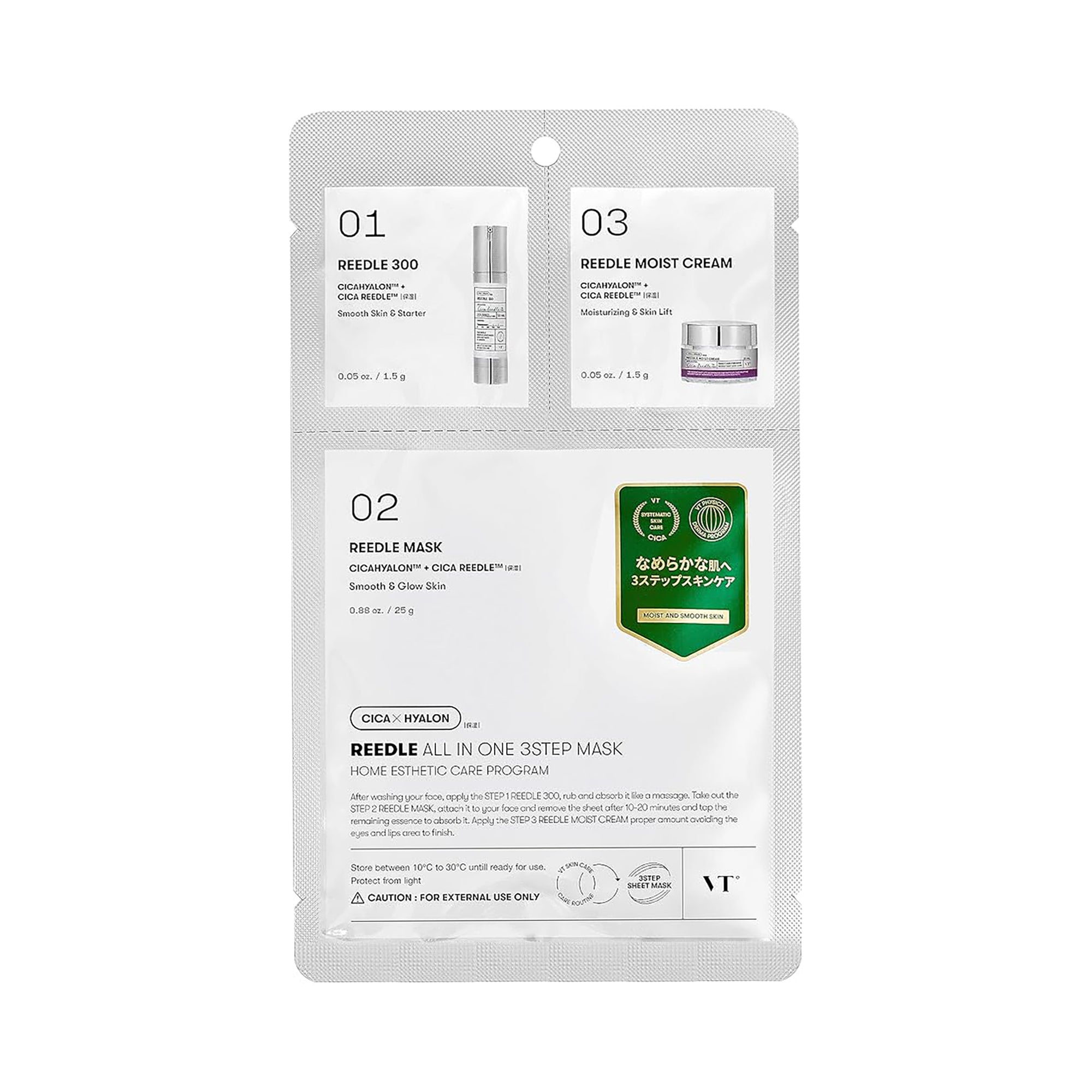 Le masque Reedle Shot All In One 3Step est un kit de soins complet combinant trois étapes de soins dans un seul emballage.