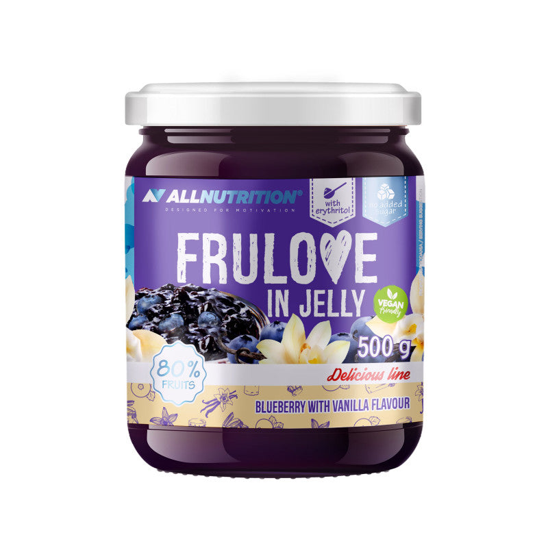 ALLNUTRITION FRULOVE IN JELLY BLUEBERRY WITH VANILLA to przepyszna frużelina bez dodatku cukru z całymi kawałkamijagód- aż 80% zawartości owoców! Stworzona z myślą o wszystkich tych, którzy chcą zadbać o sylwetkę, jednocześnie nie rezygnując w swojej diecie z odrobiny słodkiej przyjemności.