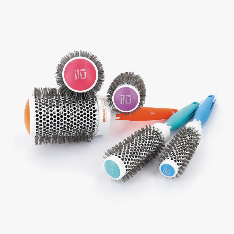 Szczotki ilū mają wentylowane korpusy pokryte ceramiczną powłoką – dzięki temu suszenie i układanie włosów są szybkie i efektywne, a efekt trwały. Inne zalety to: wyjmowany szpikulec ułatwiający dzielenie włosów na sekcje oraz ergonomiczna, dobrze wyważona rączka.