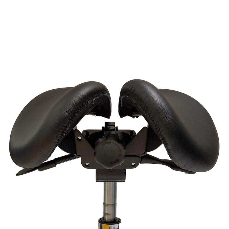 W dwuczęściowym siedzisku krzesła podsiodłowego Win ciężar jest rozłożony na kości siedzące, dzięki czemu nie ma uczucia ucisku w przestrzeni krocza. Dwuczęściowe siedzisko jest odpowiednie dla mężczyzn. Cyrkulacja powietrza w dwuczęściowym siedzisku jest lepsza, dzięki czemu unika się pocenia spowodowanego ciepłem unoszącym się z obszaru siedziska. Fotel z prawdziwej skóry oddycha i jest wygodny.