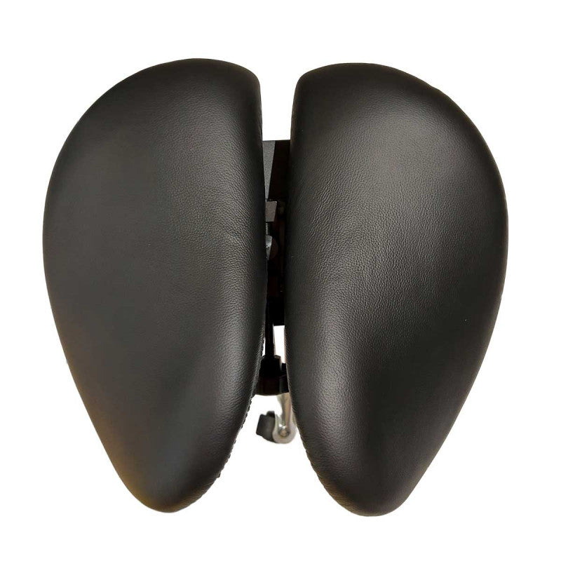 W dwuczęściowym siedzisku krzesła podsiodłowego Win ciężar jest rozłożony na kości siedzące, dzięki czemu nie ma uczucia ucisku w przestrzeni krocza. Dwuczęściowe siedzisko jest odpowiednie dla mężczyzn. Cyrkulacja powietrza w dwuczęściowym siedzisku jest lepsza, dzięki czemu unika się pocenia spowodowanego ciepłem unoszącym się z obszaru siedziska. Fotel z prawdziwej skóry oddycha i jest wygodny.