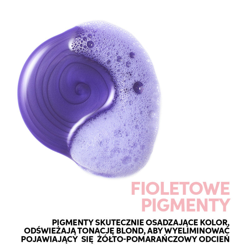 Zawiera fioletowe pigmenty kolorystyczne, które eliminują żółte tony z włosów podkreślając ich wielowymiarowy, chłodny odcień.