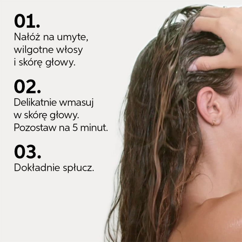 Sposób użycia: Po umyciu włosów, nałóż maskę równomiernie na skórę głowy. Delikatnie wmasuj, pozostaw na 5-10 minut, a następnie dokładnie spłucz. Stosuj regularnie, aby utrzymać skórę głowy w doskonałej kondycji.