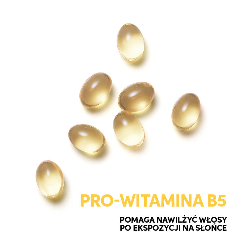 Zawiera formułę Sun-Blend stworzoną na bazie prowitaminy B5 (pantenolu). Pantenol nawilża i pogrubia włosy, dodaje im blasku i objętości. Tworzy na włosach warstwę ochronną, która zabezpiecza je przed uszkodzeniami mechanicznymi. Dodatkowo olejek morelowy nabłyszcza włosy i utrudnia wnikanie toksyn w głąb włókien.
