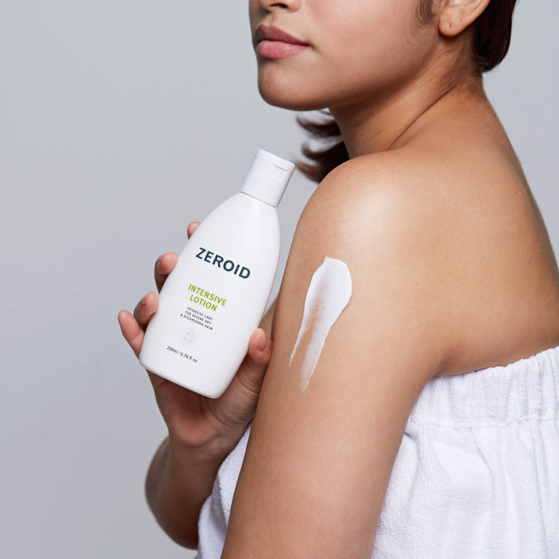 Zeroid Intensive Lotion to silnie nawilżający balsam stworzony z myślą o pielęgnacji skóry bardzo suchej, wrażliwej i skłonnej do podrażnień. Dzięki opatentowanej technologii MLE®, wzmacnia barierę hydrolipidową skóry, pomagając utrzymać optymalny poziom nawilżenia oraz ochronę przed czynnikami zewnętrznymi.