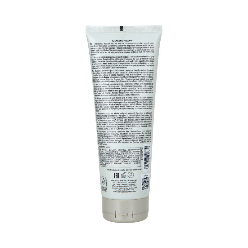 Le Masque Capillaire Alfaparf MilanoIl Living Room Milan Glorious enrichira parfaitement vos soins capillaires. Grâce à sa forte concentration en nutriments ciblant des problèmes spécifiques, il redonne vitalité et beauté aux cheveux. Il pénètre profondément dans les fibres capillaires pour les renforcer, les nourrir intensément, accélérer la régénération et lisser leur surface, les laissant merveilleusement doux au toucher, éclatants de brillance et plus résistants aux agressions. Sa formule végane, composée d'ingrédients d'origine italienne naturelle, d'extraits de riz et de marron d'Inde, aide à retenir l'eau dans les cheveux. Ce masque est un soin intensif qui nourrit les cheveux en profondeur, les rendant 7 fois plus faciles à coiffer.