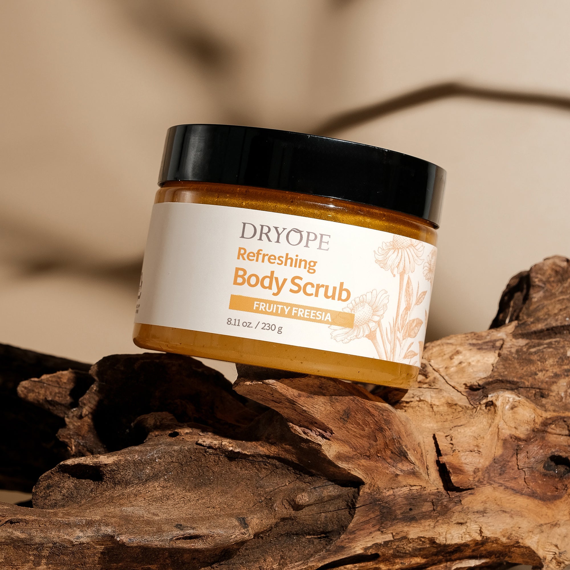 Le gommage corporel rafraîchissant DRYOPE Fruity Freesia est bien plus qu'un simple gommage : c'est une expérience de soin qui stimule les sens, lisse le corps et enveloppe la peau d'un parfum énergisant de fruits et de fleurs fraîches.