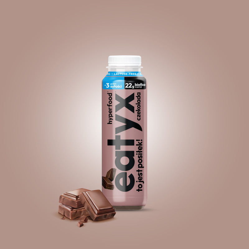 Un repas liquide complet au goût chocolaté, disponible en flacon pratique de 300 ml. Sa formule sans gluten ni lactose apporte vitamines et minéraux, 22 g de protéines , des fibres et un équilibre parfait entre lipides et glucides. Il procure une sensation de satiété jusqu'à 3 heures et bénéficie d'un faible indice glycémique . Eatyx est un substitut de repas pratique, idéal pour la gestion du poids et le maintien d'une silhouette élancée. Idéal pour le travail, la salle de sport ou une journée active.