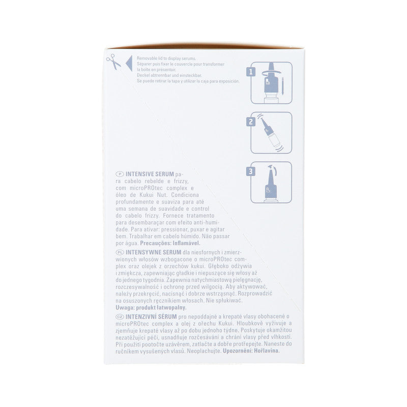 Ampułki Goldwell Dualsenses Just Smooth Intensive Taming Serum to skoncentrowana kuracja stworzona z myślą o niesfornych, puszących się i trudnych do ułożenia włosach. Dzięki wyjątkowej formule z olejkiem z orzechów kukui intensywnie nawilża każdy kosmyk, wyrównując jego powierzchnię i wygładzając strukturę, co ułatwia rozczesywanie i nadaje pasmom zdrowy wygląd. Serum działa błyskawicznie, przynosząc natychmiastowy efekt miękkości i kontroli. Dodatkowo technologia microPROtec complex gwarantuje szybkie i równomierne rozprowadzenie składników oraz zabezpieczenie koloru włosów przed blaknięciem