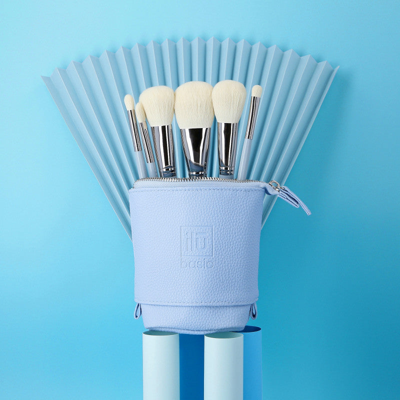 ilū basic Set de 6 pinceaux à maquillage + pochette, Bleu