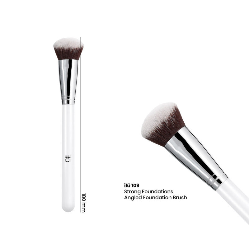 Les poils denses en taklon garantissent une peau d'apparence naturelle tout en créant une bonne couverture. Le 109 Pinceau Fondation Angled a une forme ergonomique, et des poils angulaires qui conservent leurs propriétés et sont résistants aux désinfectants.