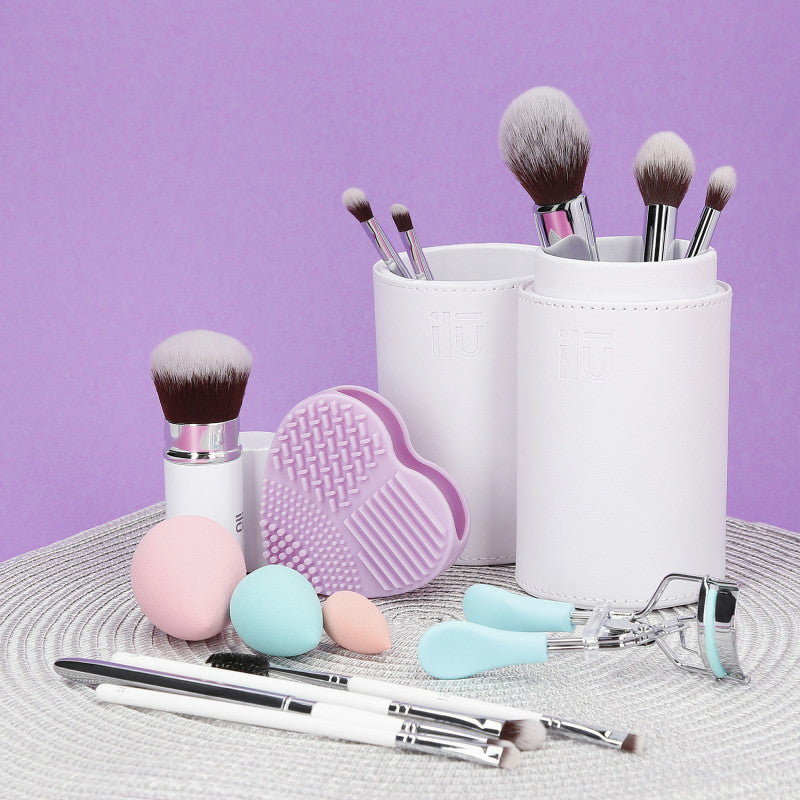 ilū Set 13 Pcs Pinceaux Maquillage avec Eponges 1 Tube 1 Nettoyeur 1 Recourbe Cils