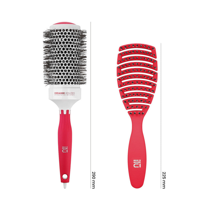 ilū Set 2 Brosse à Cheveux Rouges 1 Brosse Démêlante et 1 Brosse Coiffante