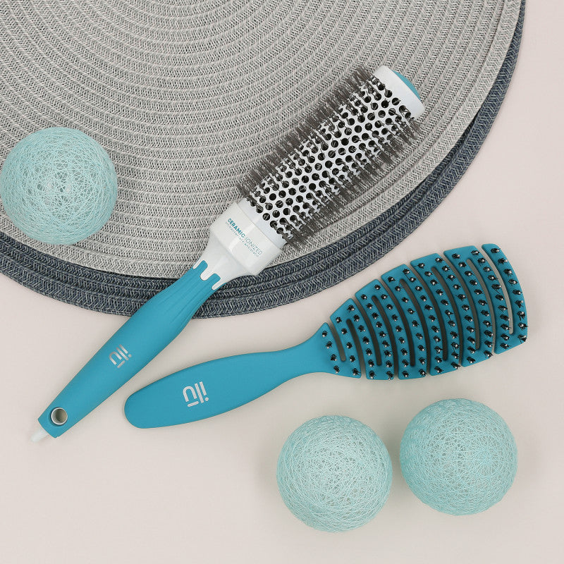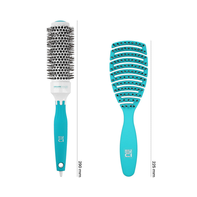 ilū Set 2 Pcs Brosses à Cheveux Turquoise 1 Brosse Démêlante et 1 Brosse Coiffante