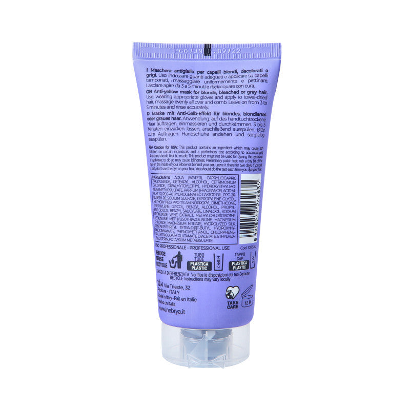 No Yellow Mask est un soin scellant au pH acide qui ferme efficacement la cuticule du cheveu. Enrichi en pigments violets, extrait de pépins de raisin et protéines de soie hydrolysées. Facilite le peignage, nourrit et hydrate les cheveux. Neutralise les reflets jaunes indésirables, laissant les cheveux doux et brillants.