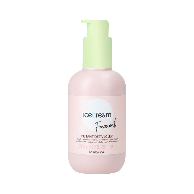 Inebrya Ice Cream Frequent Instant Detangler est une crème légère sans rinçage conçue pour les cheveux secs, poreux, crépus ou nécessitant un démêlage quotidien. Sa formule démêle instantanément les cheveux grâce à sa texture facile à appliquer. Les cheveux deviennent doux, lisses et faciles à coiffer, sans les alourdir ni laisser de film collant ; la crème disparaît complètement après le coiffage.
