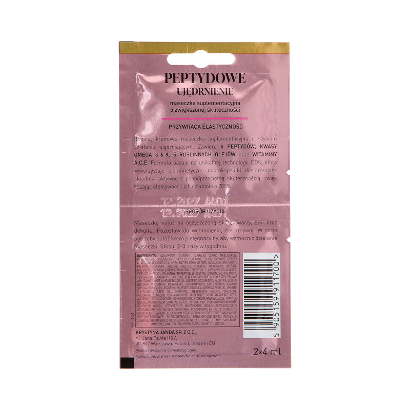 Un masque luxueux et complémentaire qui raffermit et renouvelle intensément la peau. Enrichie en peptides avancés, huiles végétales et vitamines A, C et E, la formule prévient les rides, lisse la peau et restaure son élasticité. Grâce à la combinaison de nutriments, le masque soutient efficacement les processus naturels de renouvellement de la peau, la laissant hydratée et éclatante. Le masque a été conçu pour le soin des peaux matures qui nécessitent de l'élasticité.