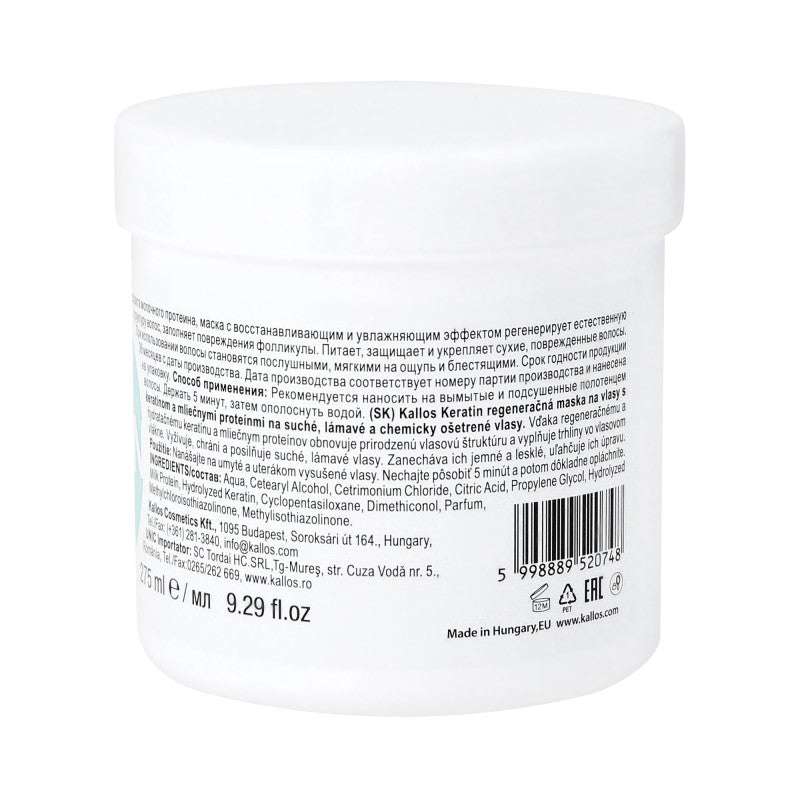 KALLOS Keratin Masque cheveux secs et faibles 275ml