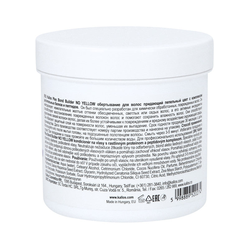 KALLOS PLEX NO YELLOW Masque pour cheveux blonds avec un complexe de protéines végétales et de peptides 275 ml