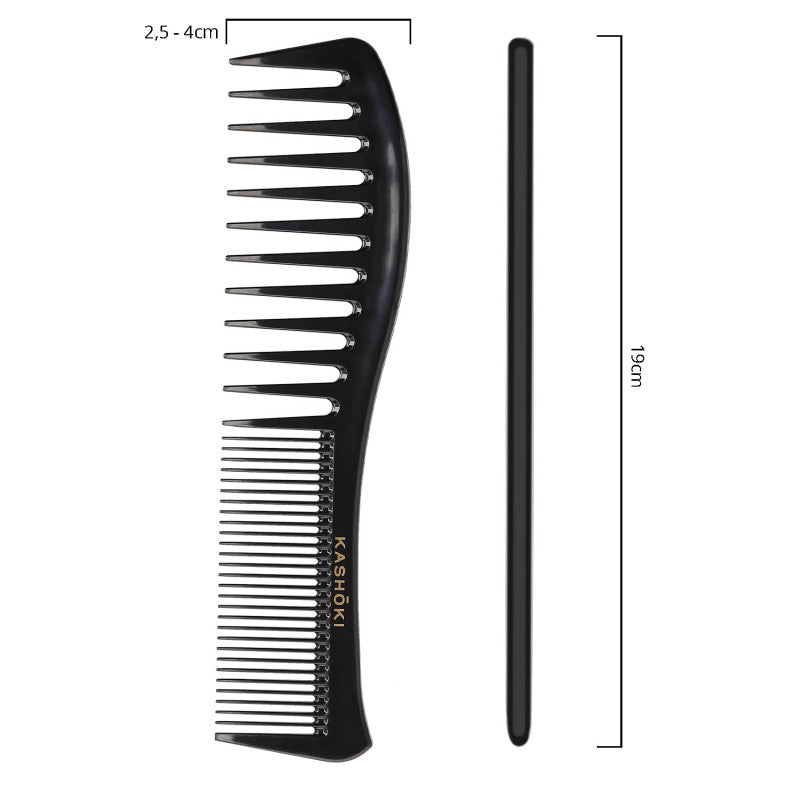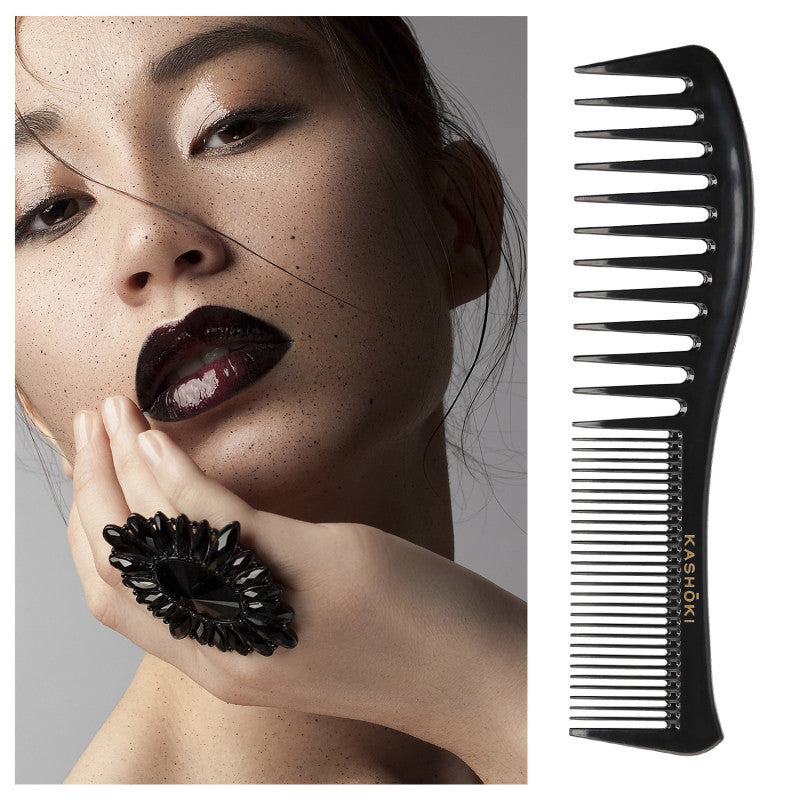 Le peigne T4B Kashoki Tomoko est recommandé pour les cheveux bouclés naturels ou après permanente. Il aide à bien coiffer les cheveux secs et humides. Le peigne est léger et pratique, en plastique, idéal pour une utilisation en salons de beauté ainsi qu’à domicile. Le peigne a des dents en deux épaisseurs et avec un espacement différent, c'est pourquoi il fonctionne bien pour le peignage et le coiffage.