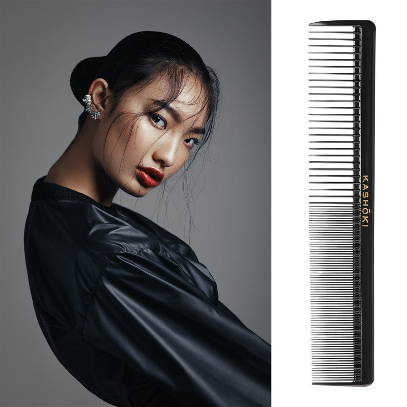 Le peigne T4B Kashōki Keiko est recommandé pour la coupe, le peignage et le coiffage précis. Il a des pointes arrondies qui n'irritent pas le cuir chevelu. Le peigne est léger et pratique, idéal pour une utilisation en salons de beauté ainsi qu’à domicile. Les dents mixtes sont durables et résistantes et évitent l’effet électrisés des cheveux.