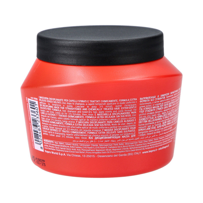 KAYPRO PROSLEEK est un masque luxueux pour cheveux secs, abîmés et crépus, conçu comme un soin réparateur et lissant intensif. Sa formule est spécifiquement exempte de détergents agressifs comme le SLS, le SLES et le SLC, ce qui le rend idéal après des traitements chimiques ou un lissage à la kératine. Enrichi en kératine, huile d'amande et beurre de cacao, ce masque agit de manière multidimensionnelle : il reconstruit la structure capillaire, hydrate et nourrit en profondeur, tout en lissant et en éliminant efficacement les frisottis. Grâce à ses propriétés légères et antistatiques, ce masque n'alourdit pas les cheveux et facilite le coiffage, leur redonnant douceur, élasticité et brillance satinée.