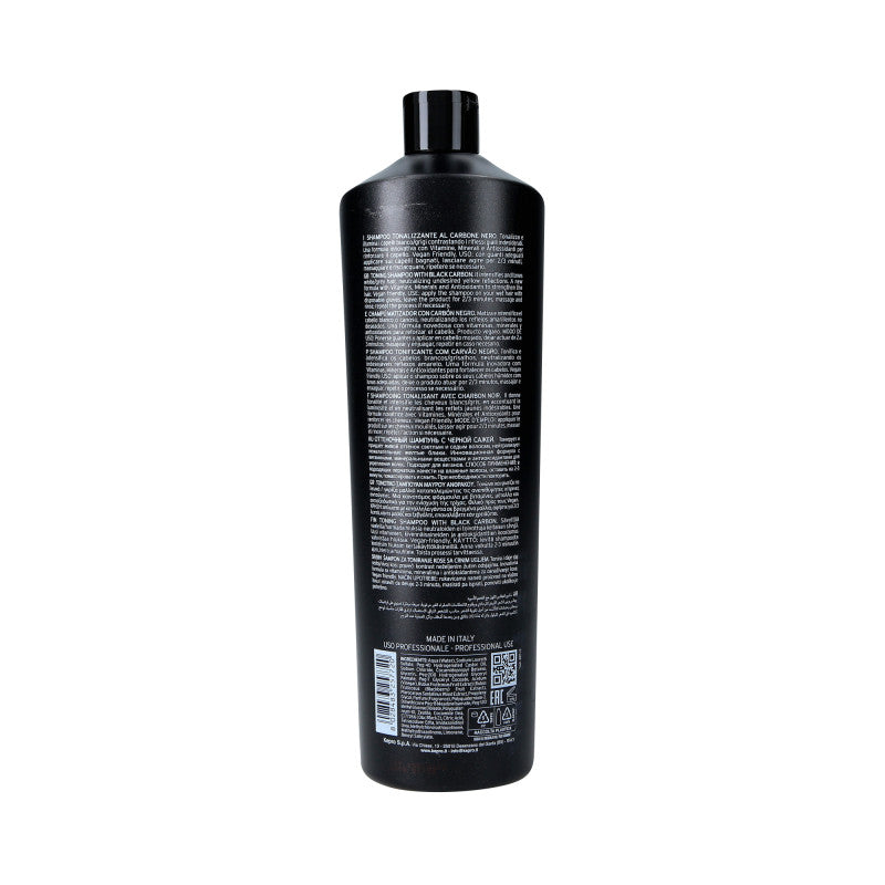 KAYPRO Toning Carbon est un shampooing innovant spécialement conçu pour les cheveux blonds, décolorés et gris qui nécessitent une neutralisation des reflets jaunes et une hydratation intense. Sa formule unique est enrichie en pigments noirs et en charbon actif, qui agissent ensemble pour tonifier et purifier, éliminant efficacement les reflets indésirables et donnant aux cheveux un teint frais et éclatant. Ce shampooing est également enrichi en vitamines, minéraux et antioxydants qui protègent les cheveux des radicaux libres et des agressions extérieures. Il nettoie en douceur sans dessécher les cheveux ni le cuir chevelu, et sa formule vegan, sans parabènes, silicones ni sulfates, en fait le soin quotidien idéal pour les cheveux blonds et gris.