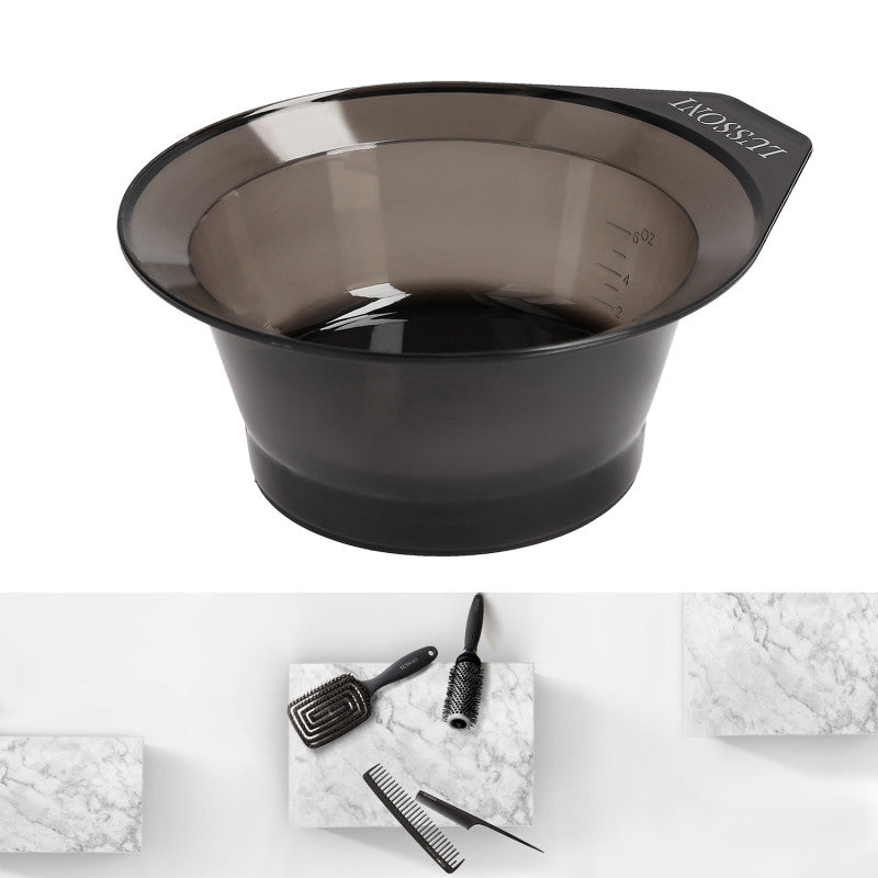 Il est fabriqué d’un matériau durable, idéal pour les salons de coiffure. Les petites dents au bord permettent d’éliminer l’excès de teinture du pinceau et l’échelle à la base permet une mesure précise des produits de colorations.