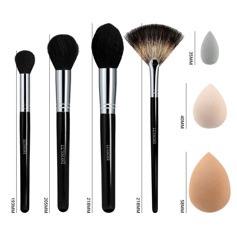 L'ensemble Lussoni Classy Girl est un set complet d'accessoires professionnel et comprend : pinceaux poudre, blush, bronzer et enlumineur ainsi qu'un ensemble d'éponges en trois tailles différentes.