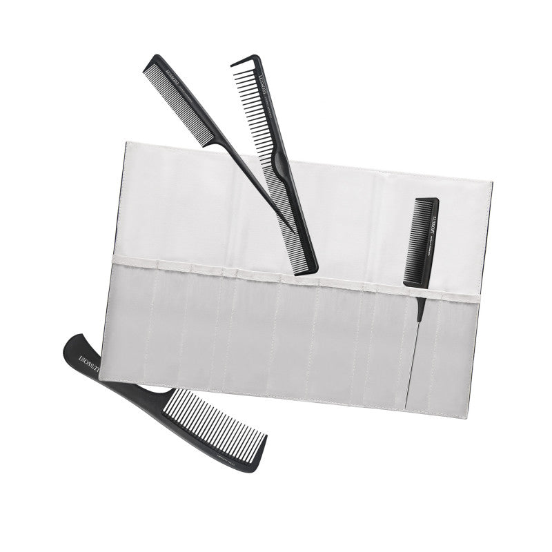 Étui très pratique avec fermeture élastique, pour 9 peignes. Matériau imprégné résistant, facile à nettoyer. Il protège vos accessoires de la rupture et permet de les transporter confortablement.