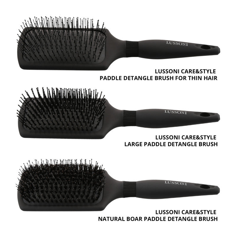 - Démêlage Simplifié — Les caractéristiques des brosses Lussoni facilitent le démêlage pour tous les types de cheveux, sans aucun risque d’endommagement