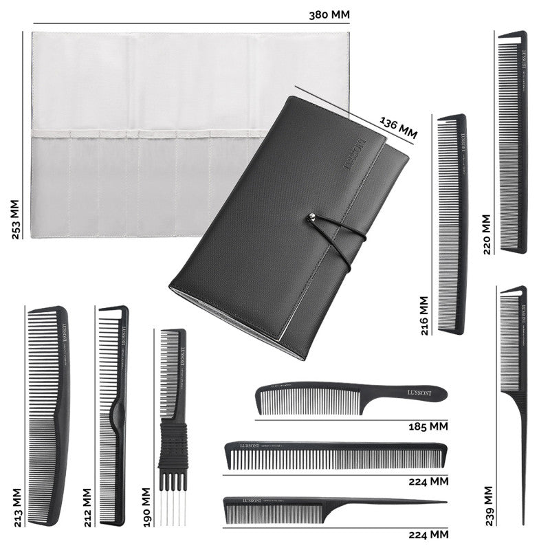 LUSSONI Set Peignes Professionnels 10 Pcs avec trousse