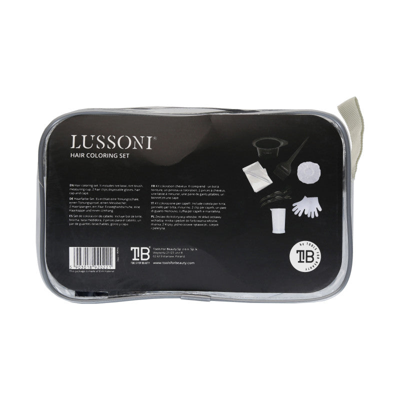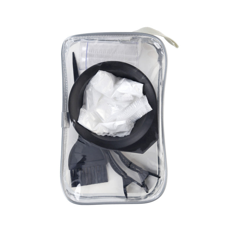 Le kit comprend une gamme complète d'accessoires nécessaires à la réalisation d'un traitement de coloration capillaire : un bol à teinture, un pinceau à coloration, 2 pinces à cheveux, une tasse à mesurer, une paire de gants jetables, un bonnet et une cape. Le set facilitera les procédures de coloration des cheveux à la maison.