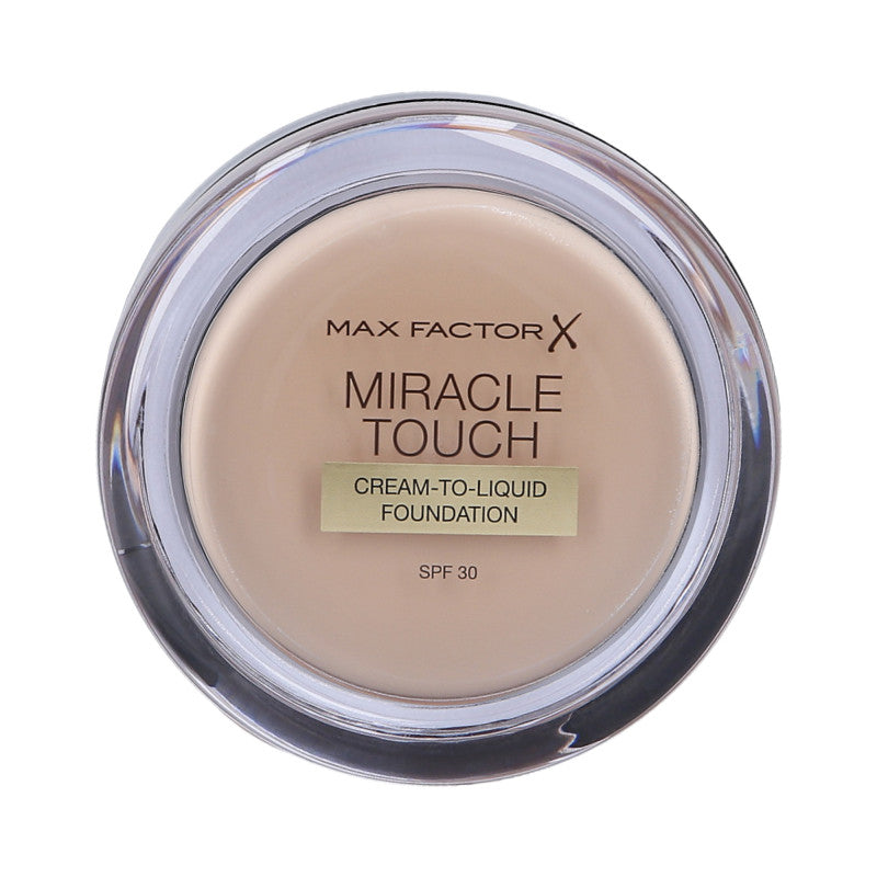 Le fond de teint de la gamme Max Factor Miracle Touch a été créé pour offrir à la peau une belle couvrance tout en l'hydratant. Le fond de teint atténue l'apparence des ridules et rend le teint uniforme et lisse.