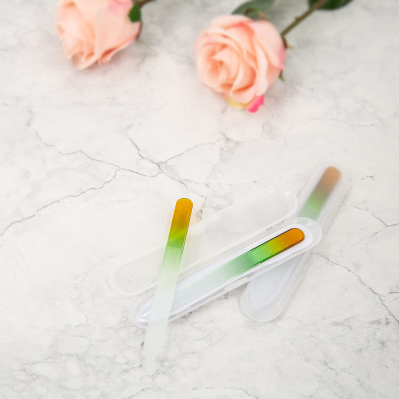 Lime à ongles en verre de haute qualité. Grâce au matériau durable, elle permet une longue utilisation.