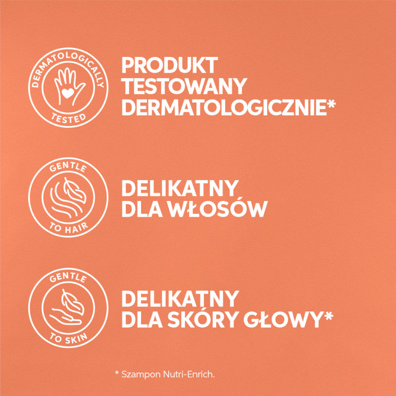 Il contient la formule Nutri-Enrich-Blend riche en acide oléique, panthénol, baies de goji et vitamine E. ces ingrédients apportent aux cheveux les minéraux essentiels, des peptides et des vitamines qui les nourrissent et les hydratent.