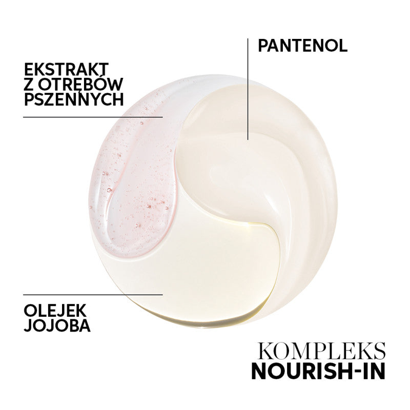 Contient une formule complexe Nourish-In riche en huile de jojoba et en extrait de son de blé. L'huile de jojoba hydrate et nourrit les cheveux, grâce auxquels ils sont protégés contre la perte d'humidité. Il met également en valeur l'éclat naturel de vos cheveux. De plus, l'extrait de son de blé riche en vitamines A et E les renforce et agit comme antioxydant.